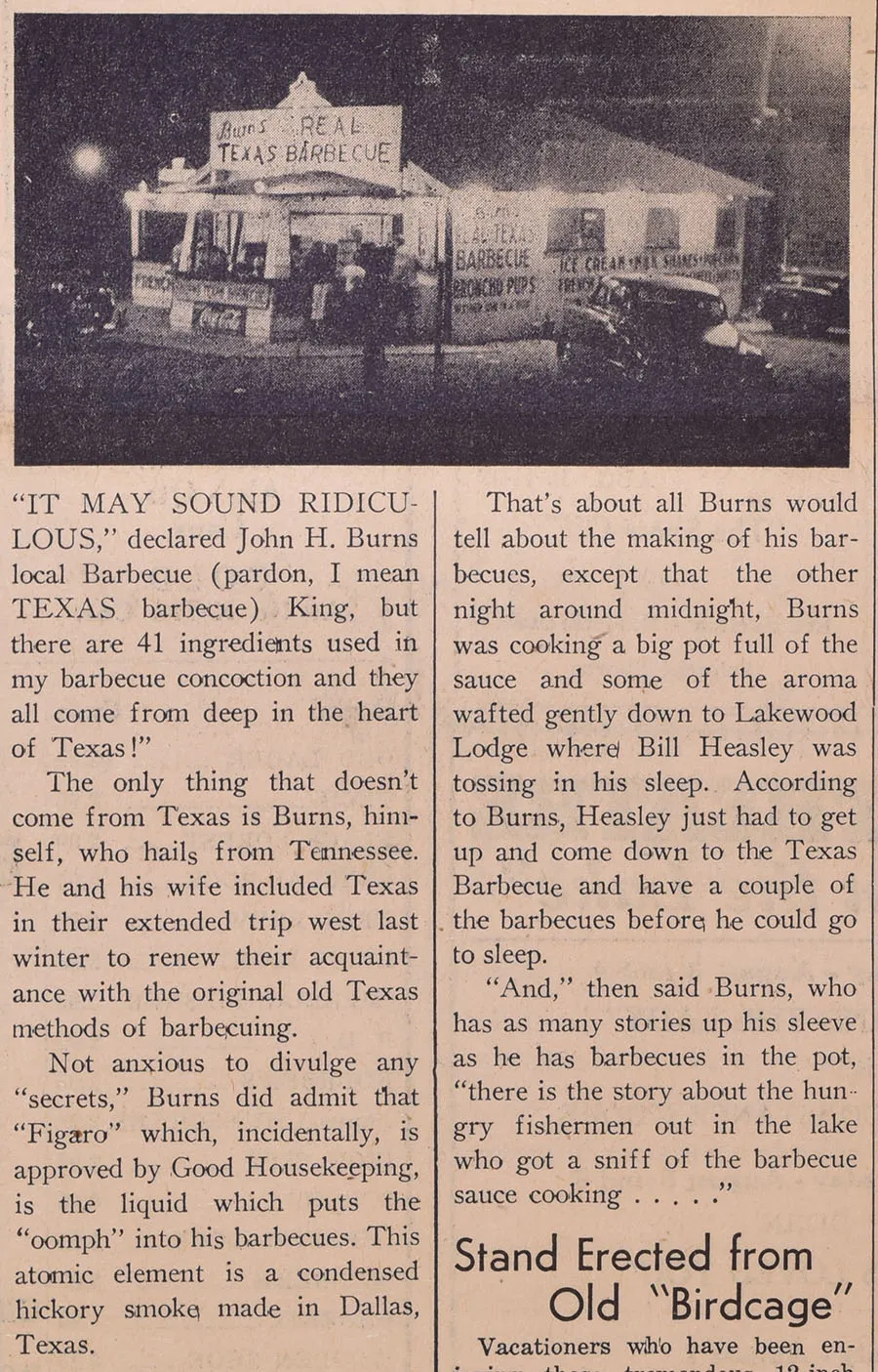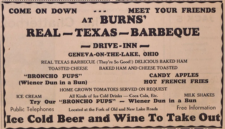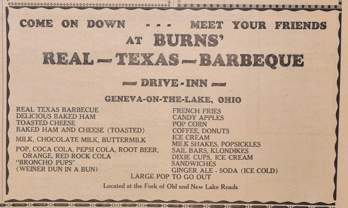 Burns’ Corner later became known as Dave’s Barbecue, as evidenced by an ad from a 1960s visitors’ guide.