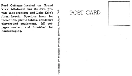 The cottages’ names included Okeedoke, Taka-Peke-Inn, Fordlawn, Triple Inn, Tumble Inn, Putnam, Just-a-Mere, Harmony House, Brighton, Dukamin, Foursome, and This’ll Do. As of spring 2016, only two of the cottages remained: This’ll Do (trimmed in yellow) and Putnam (orange trim). The house that John and Florence built in 1936 still stands as well (gray, one-story, on the south side of Lake Road, west of Putnam).