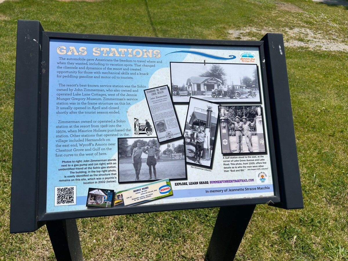 Right here stood a small but busy Sohio station, run by a man named John Zimmerman. Each spring, as the season began, Zimmerman would open his doors to the steady stream of tourists. By fall, when the crowds faded and the lake grew quiet again, he would close up shop, waiting for another summer to return.