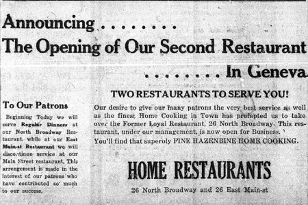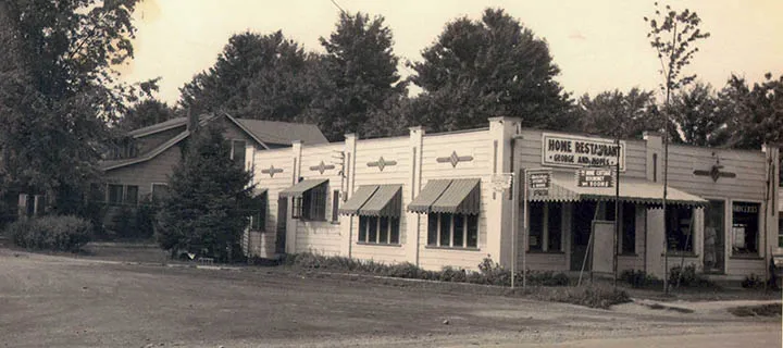 The building on the south side of The Strip had a tea house before becoming The Home Restaurant, which was opened by Forest and Della Hopes and Addie George. The Hopes had run a restaurant in Geneva prior to relocating their business to The Strip. Anna George, Addie’s mother, was to have been involved in The Home, but she died during their preparations for opening.