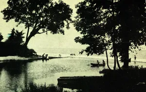 At Cowles Creek, there were rentals of small sailboats, rowboats, and canoes over the years, dating back as early as 1858. A natural estuary, the water backed up into the marsh of Cowles Creek whenever there was a sandbar across the mouth. There are several postcard views of the estuary and lake, each of several acres, that would form a market for small boat rentals.