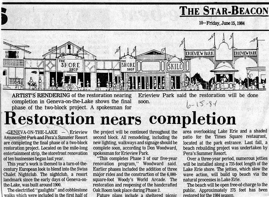 The automobile meant that visitors no longer had to be confined to a one-week or longer stay. They could drive to the resort and stay one or two nights in a cottage or tent. But they needed restaurants that could meet this more flexible schedule. Thus was Time Square started by the Pera family. It made food accessible at any time of day and in an open-air setting (restaurants were not air-conditioned back then, and it could be very miserable in the summer). Guests could grab their food and eat while exploring The Strip or take their lunch to the beach with them (beaches were all along the north side of The Strip).